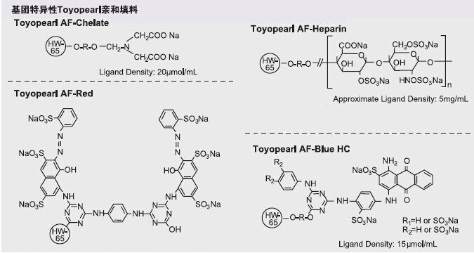 ?Toyopearl AF-Heparin HC-650M填料。肝素是線型的高硫酸化葡萄糖胺聚糖,具有抗凝血性能。由于其多陰離子性質(zhì),肝素能和廣泛的生物分子相互作用,包括血漿成分、脂蛋白脂肪酶、膠原酶和DNA聚合酶等。在親和層析中,固定化肝素被廣泛用作吸附劑來純化生物物質(zhì)。TOYOPEARL AF-Heparin HC-650M填料是一種高載量高親和力的吸附劑,具有優(yōu)良的化學(xué)穩(wěn)定性。