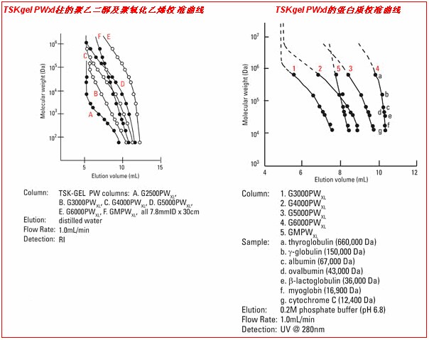 1. TSKgel PWxl柱由親水性球形聚甲基丙烯酸酯顆粒填充。